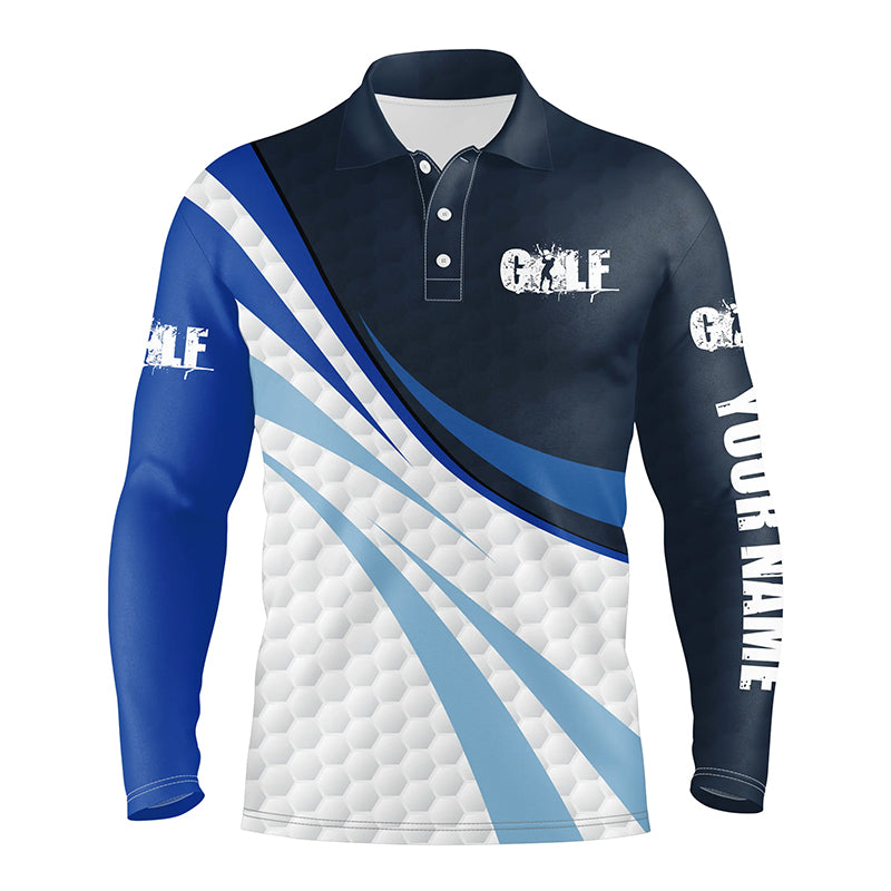 Mens golf polo shirts blue and white golf balls custom name golf shirts for men, gift for golf lovers NQS4316