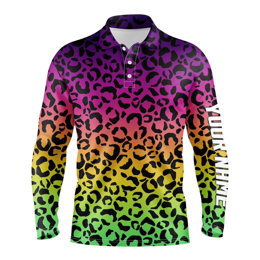 Mens golf polo shirts neon rainbow leopard pattern golf shirt custom name golf wear for mens NQS4993