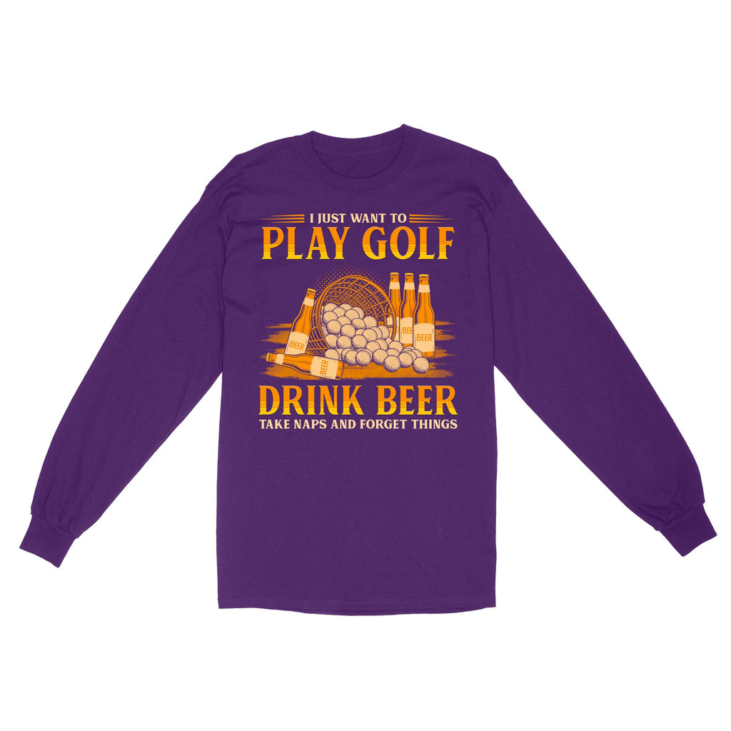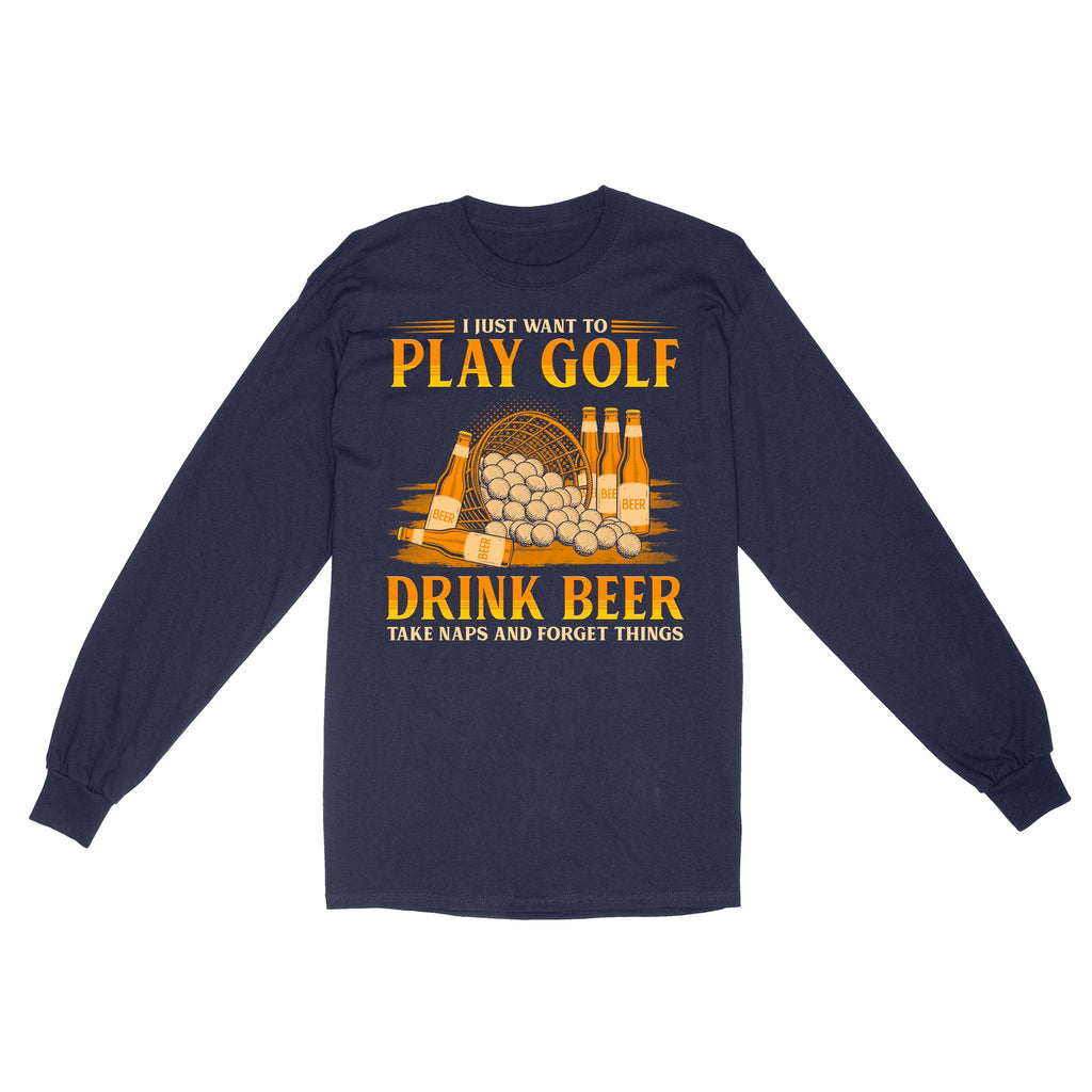Funny golf long sleeve shirt I just want to drink golf drink beer take naps and forget things NQS4768