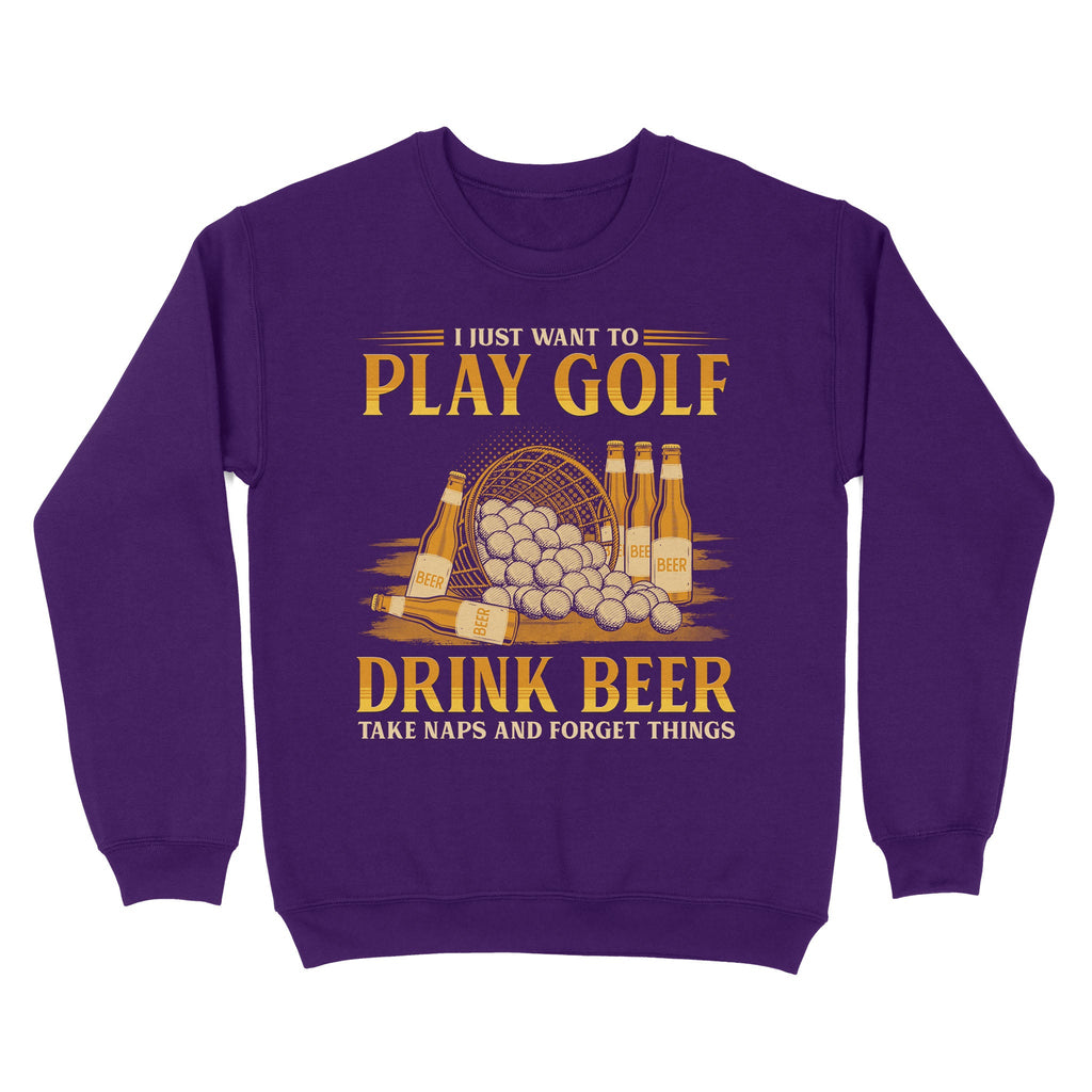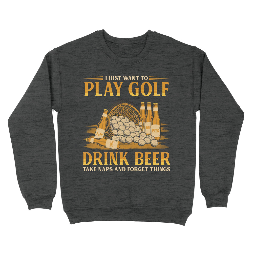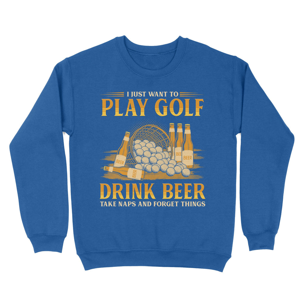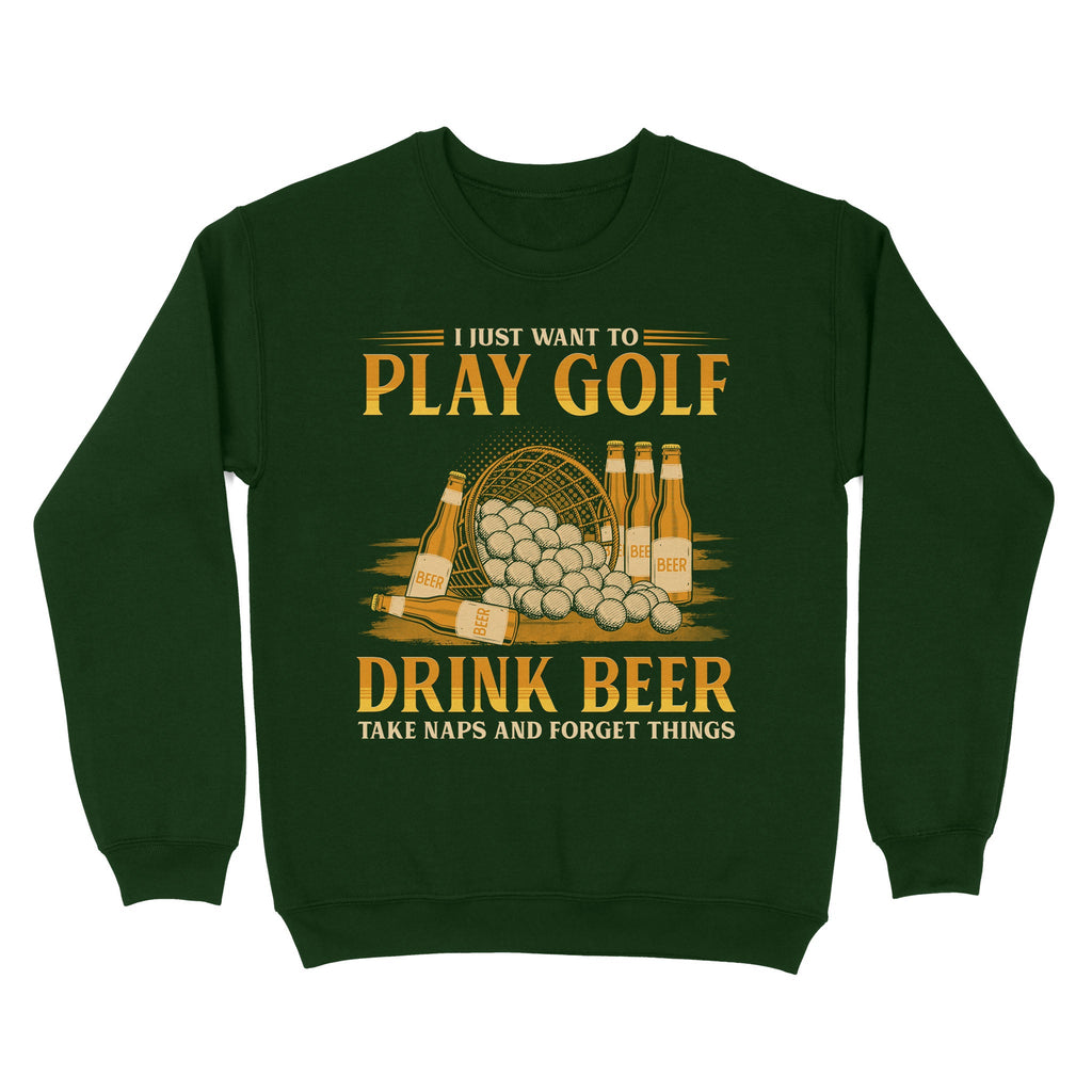 Funny golf sweatshirt I just want to drink golf drink beer take naps and forget things NQS4768