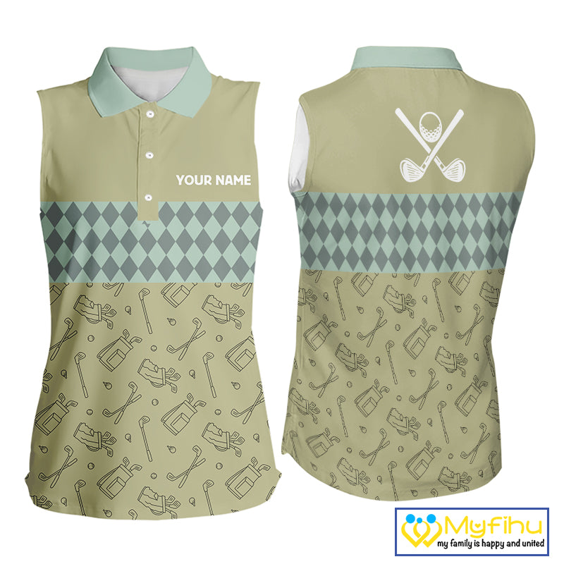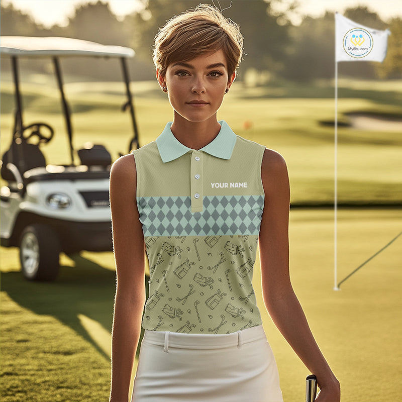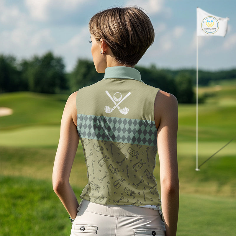 Olive Green Golf Camo argyle pattern Women sleeveless golf polo shirts custom best ladies golf wear NQS9973