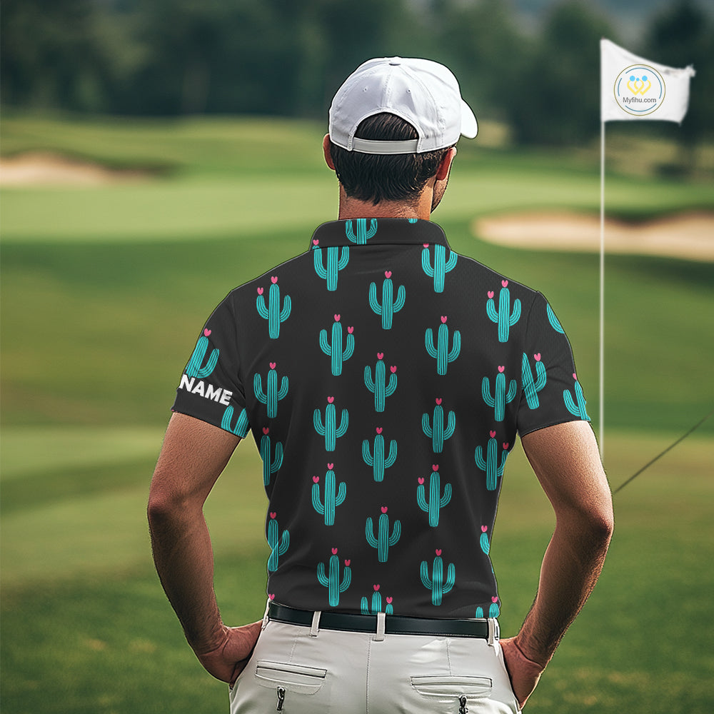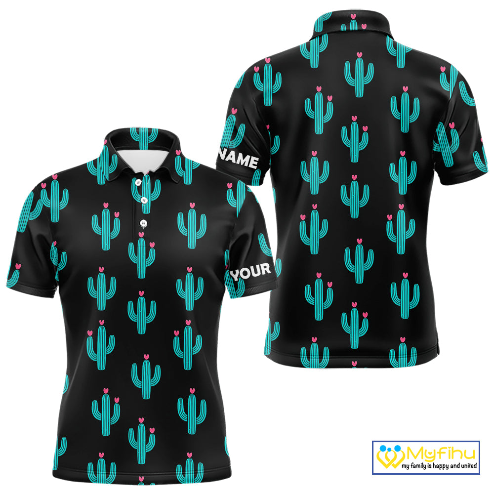 Personalized black and green cactus flower pattern mens golf polo shirts custom cactus golf shirts NQS9942
