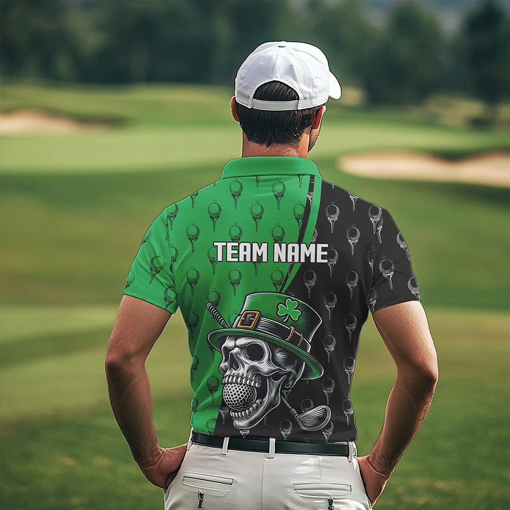 Personalized Black and Green Camo Skull Men golf polo shirts Custom St Patrick Day mens golf wear NQS9566