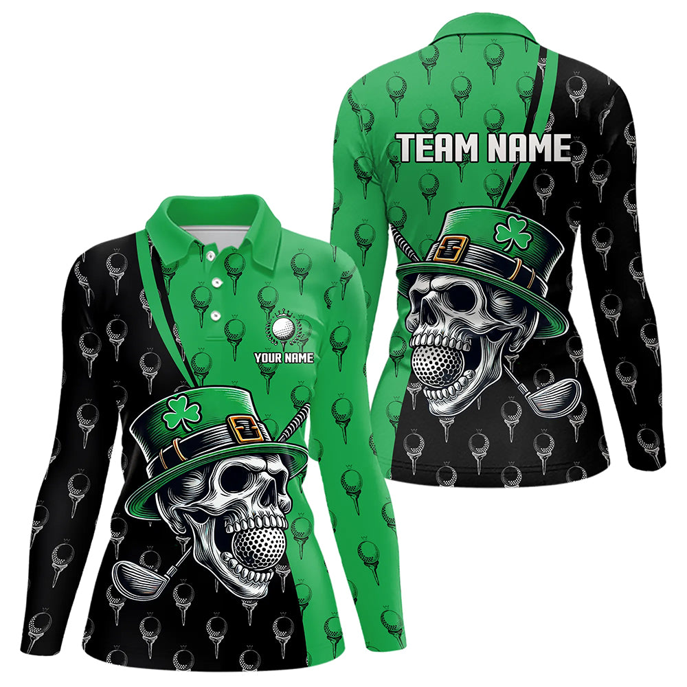 Personalized Black and Green Camo Skull Women golf polo shirts Custom St Patrick Day ladies golf wear NQS9566