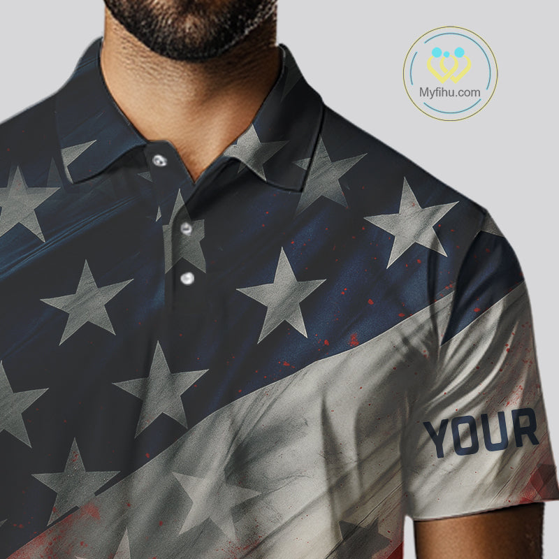 Personalized golf polos shirts for men American flag 4th July custom patriotic best men golf wears NQS9945