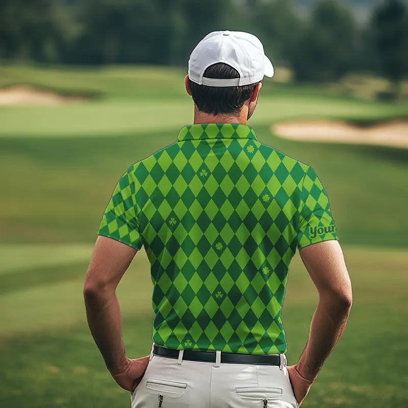 Personalized Green argyle pattern Men golf polo shirts Custom St Patrick day golf tops for men NQS9545