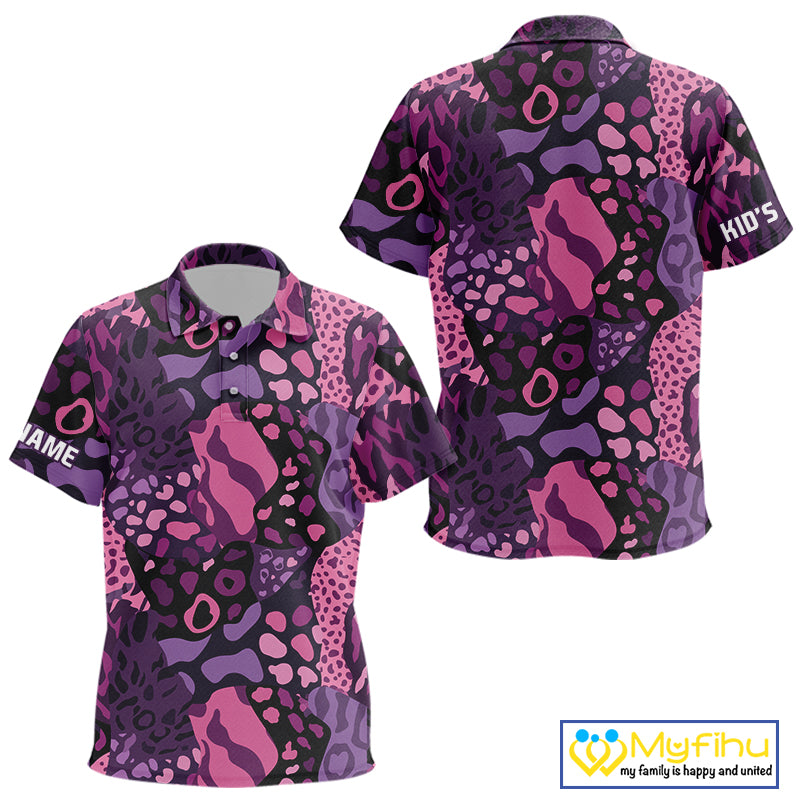 Pink and purple animal prints pattern Kid Golf Polo Shirts Custom Kid golf tops, golfing gifts NQS10243