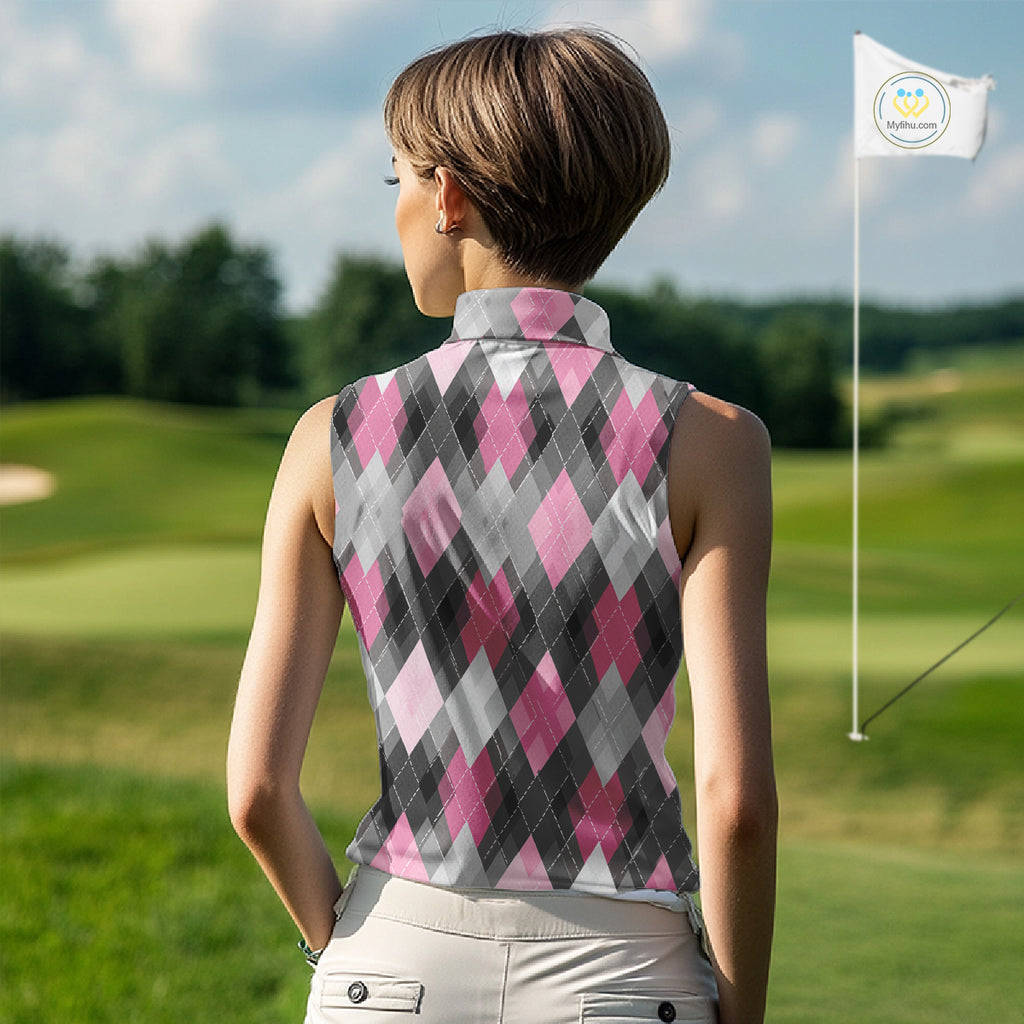 Pink argyle pattern Women Sleeveless polo shirt custom best team golf shirts, golfing gifts NQS10407