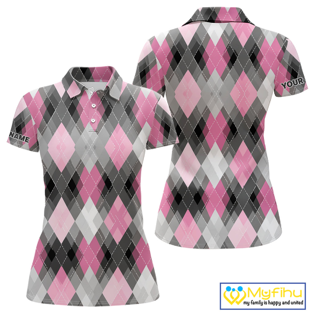 Pink argyle pattern Womens golf polo shirt custom best team golf shirts, golfing gifts NQS10407