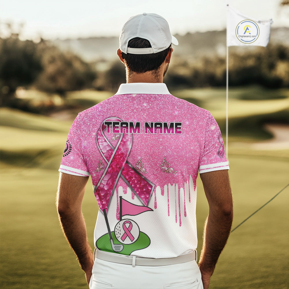 Pink ribbon glitter Golf Polo Shirts For Men Custom team golf jerseys, breast cancer golf shirts NQS9882