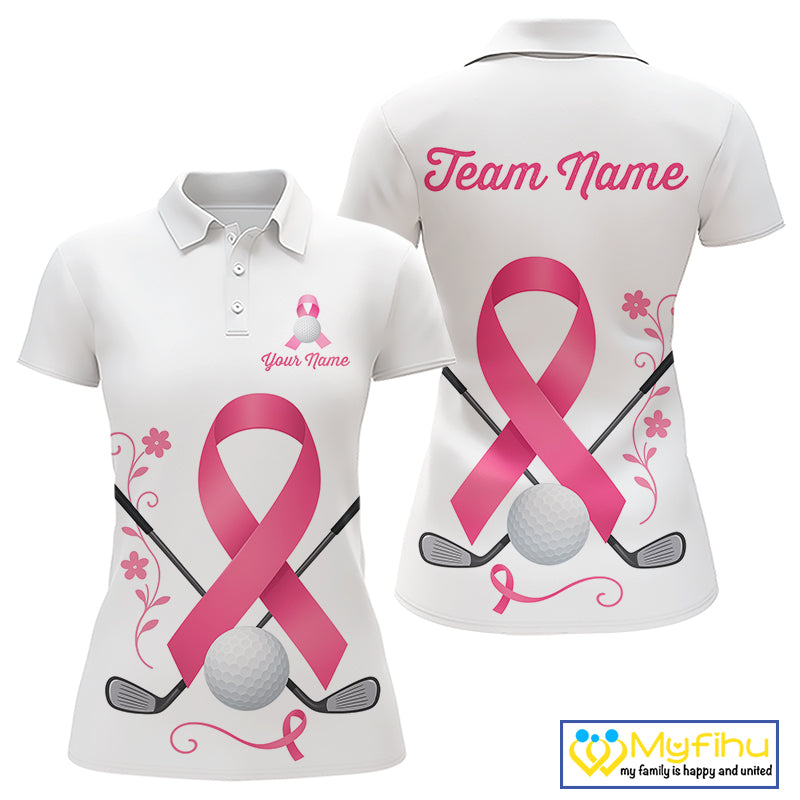 Pink ribbon golf ball clubs Women polo golf shirts Custom Breast cancer awareness team golf jerseys NQS10506