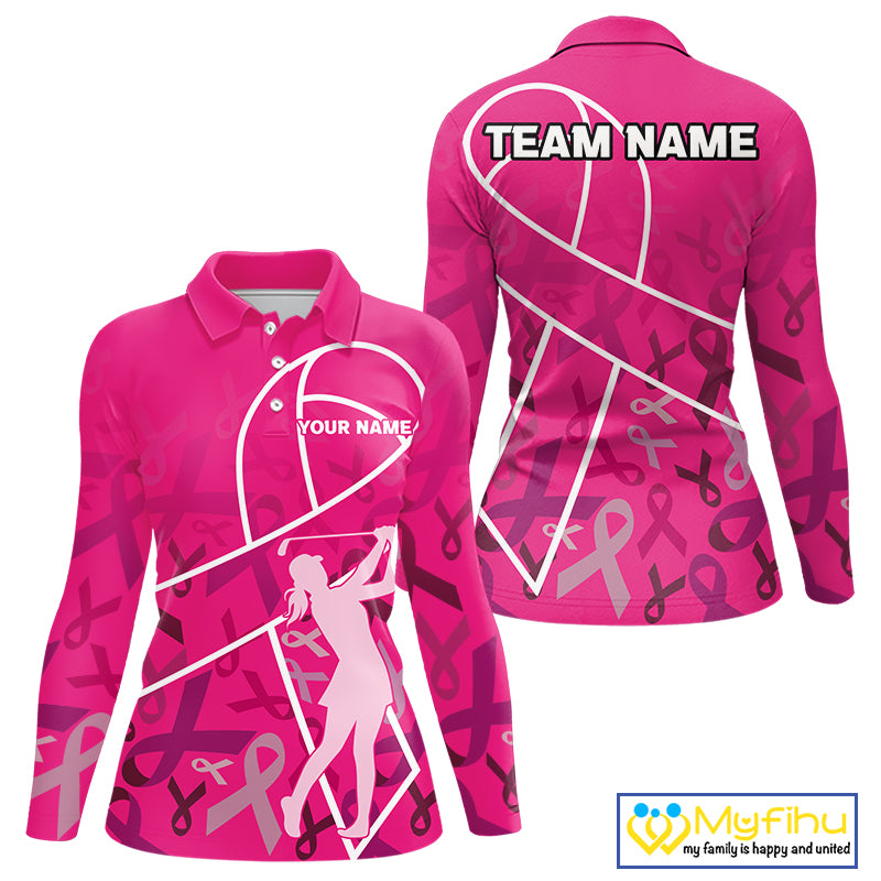 Pink ribbon pattern breast cancer awareness Women golf polo shirt Custom team Golf attire For ladies NQS10189