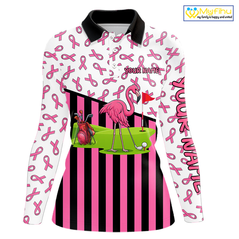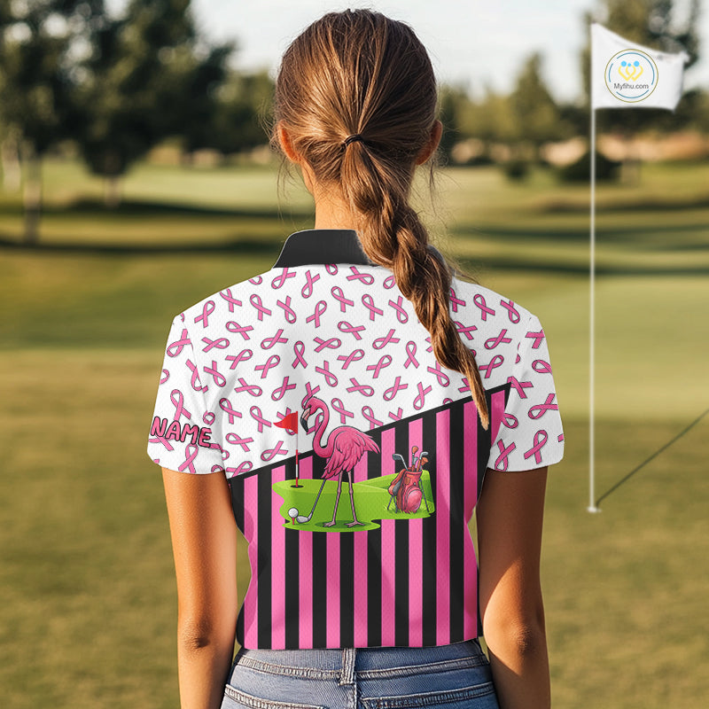 Pink ribbon pattern flamingo Women golf polo shirts Custom breast cancer awareness ladies golf outfit NQS10149