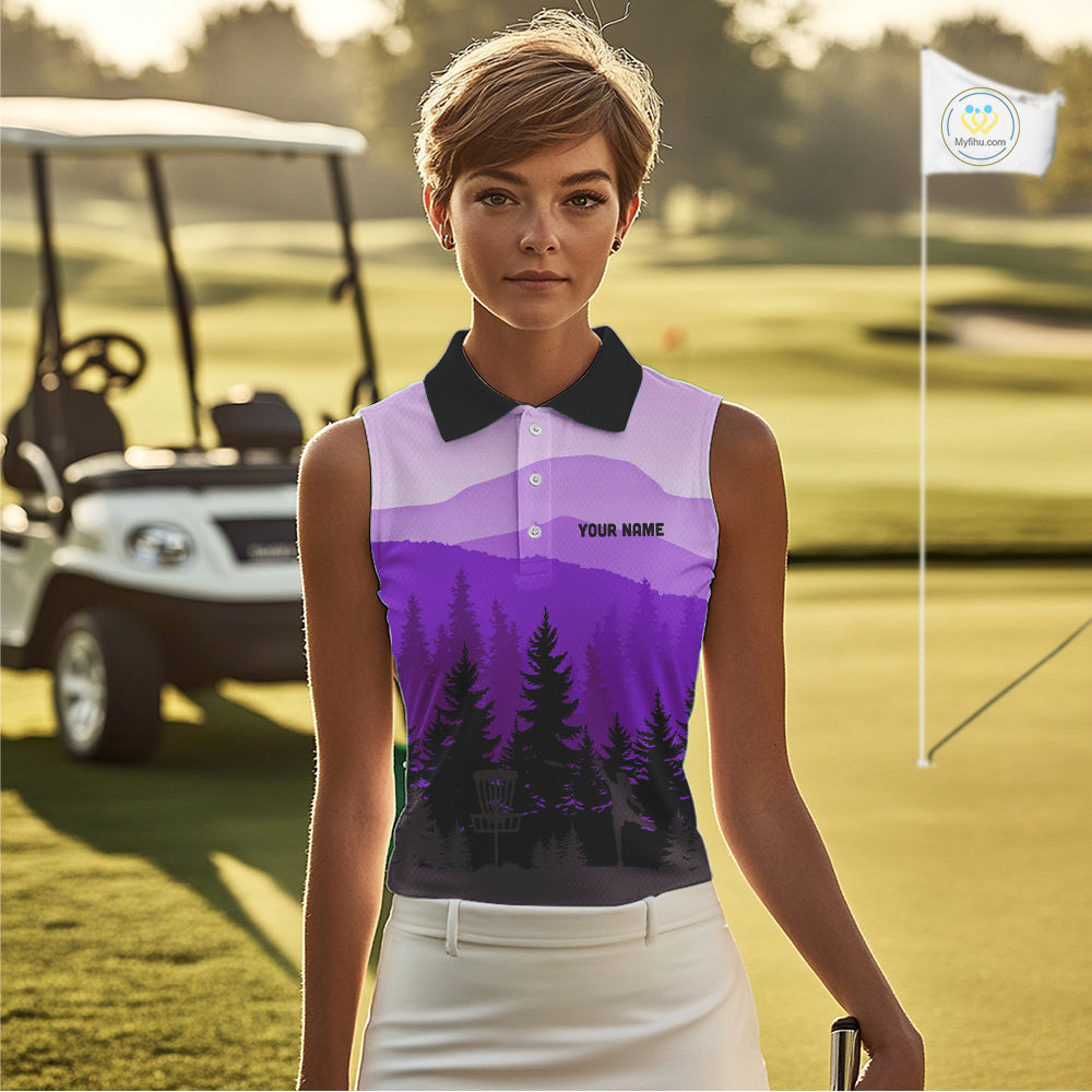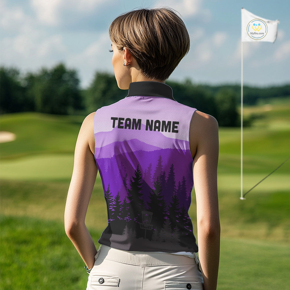 Purple pattern forest Womens sleeveless polo shirt Custom team disc golf jerseys for ladies NQS10028