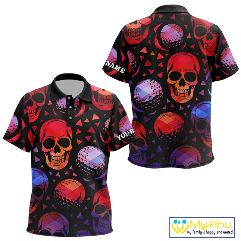 Red Gradient Skull Golf Ball pattern Kid polo golf shirts Custom Halloween golf top for Kid NQS10511