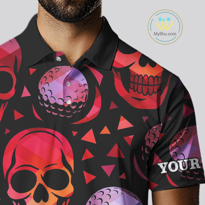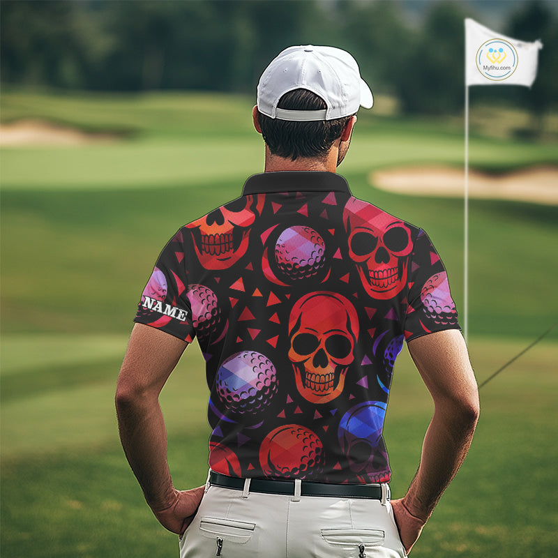 Red Gradient Skull Golf Ball pattern Mens polo golf shirts Custom Halloween golf top for men NQS10511