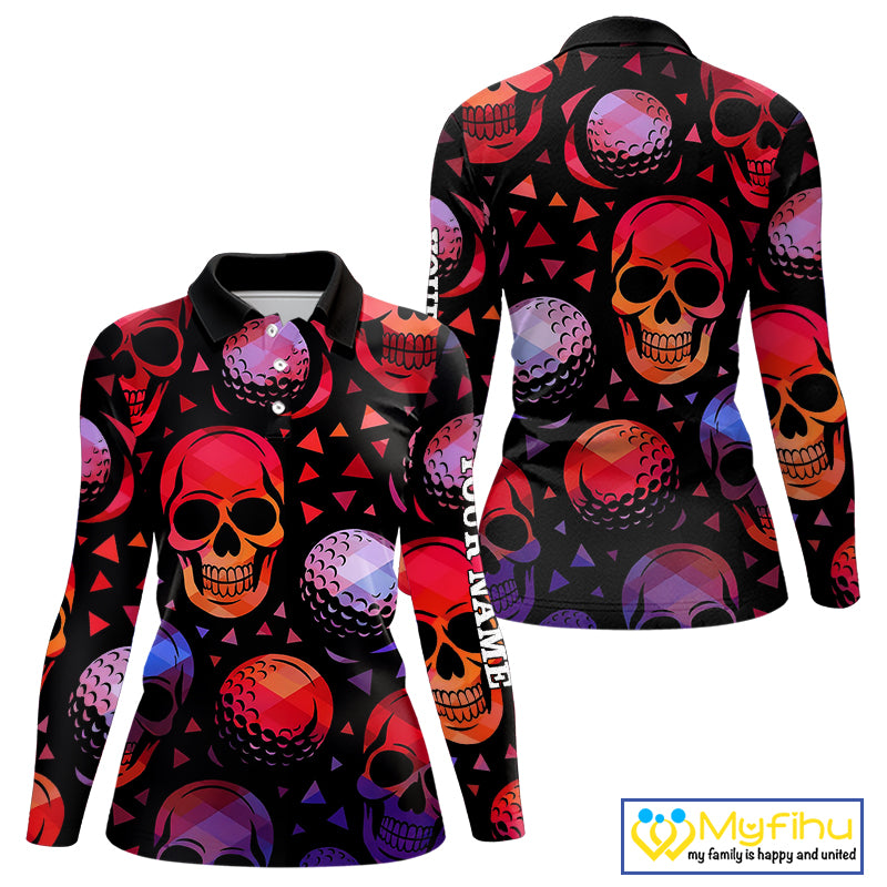 Red Gradient Skull Golf Ball pattern Women polo golf shirts Custom Halloween golf top for ladies NQS10511