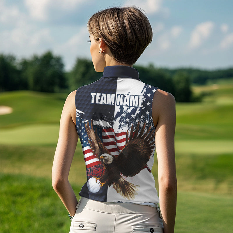 Red, White and Blue American Flag Eagle Sleeveless Golf polo shirts Custom Patriotic Golf Team Jersey NQS9608