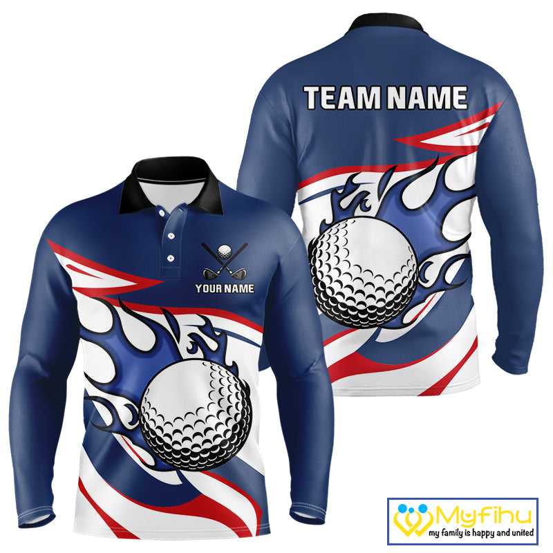 Red, White and Blue Flame golf ball Mens Golf polo shirts Custom patriotic Golf Outfit For Mens NQS10044
