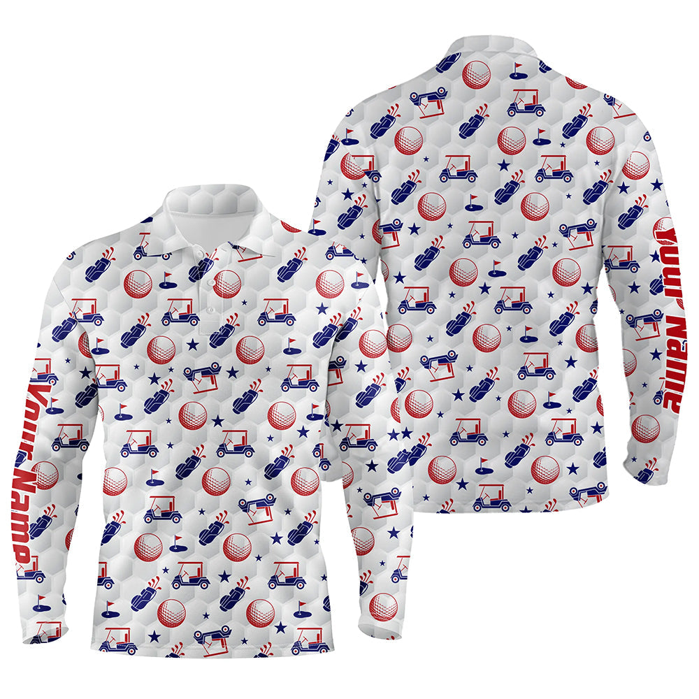 Red, white, and blue men golf polo shirts custom American flag patriotic golf clubs pattern golf shirt NQS5503
