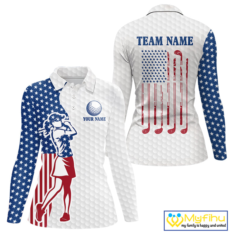 Red, White & Blue American Flag Golf polo shirts For Women Custom patriotic ladies golf top NQS9987