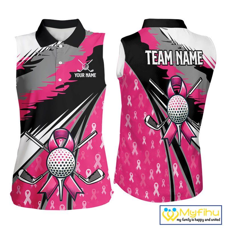 Sleeveless polo shirt Custom pink ribbon pattern ladies golf clothes, Breast cancer shirt for golfer NQS10516