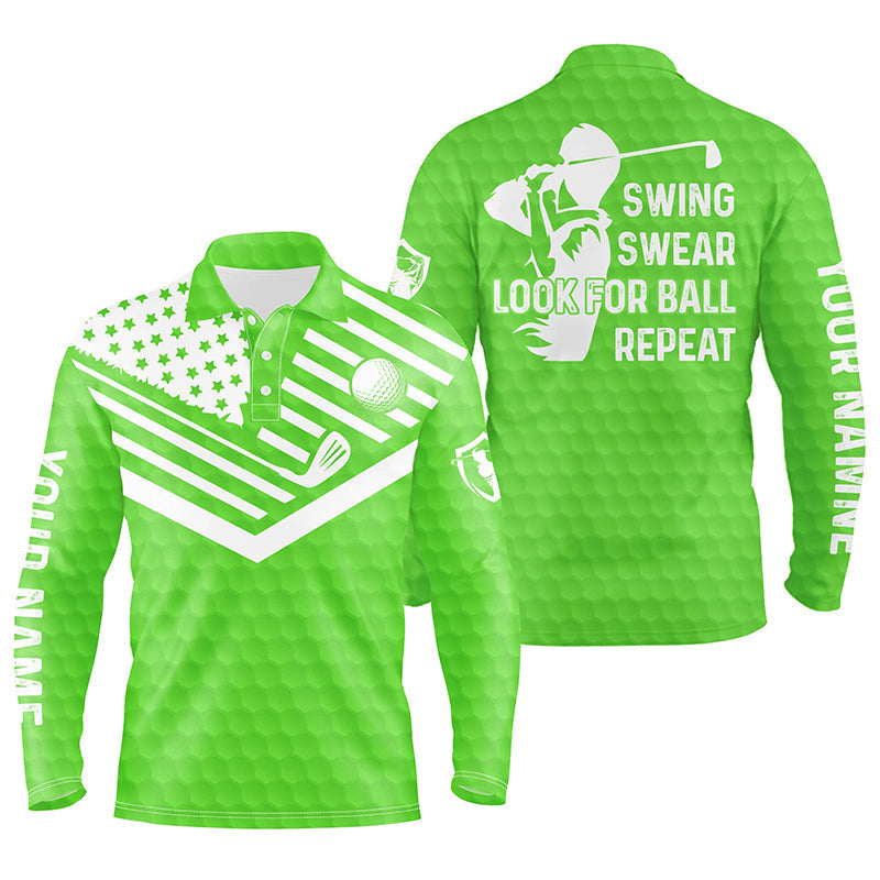Swing swear look for ball repeat American flag custom name team golf polo shirts | Green NQS4344