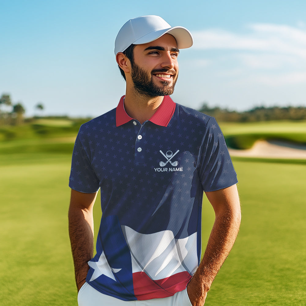 Texas Flag Golf Polo Shirts For Men Custom Team Name golf tops for mens, patriotic golf gifts NQS9769