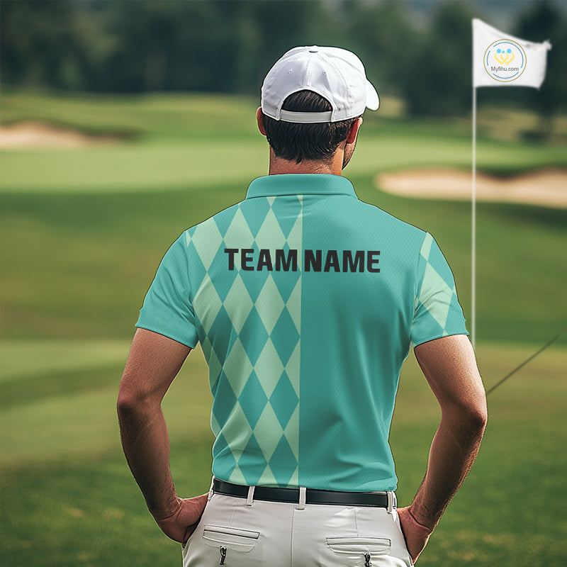 Turquoise argyle pattern Men golf polo shirt Custom golf clothes for men, cool golf gifts NQS10108
