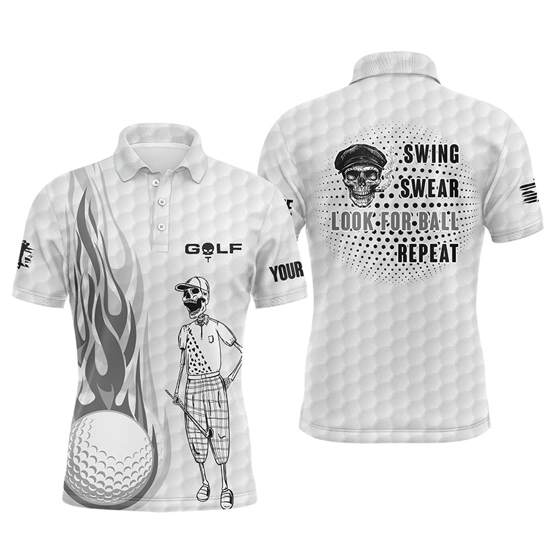 White golf ball skins Mens golf polo shirt custom name skull golf swing swear look for ball repeat NQS5613