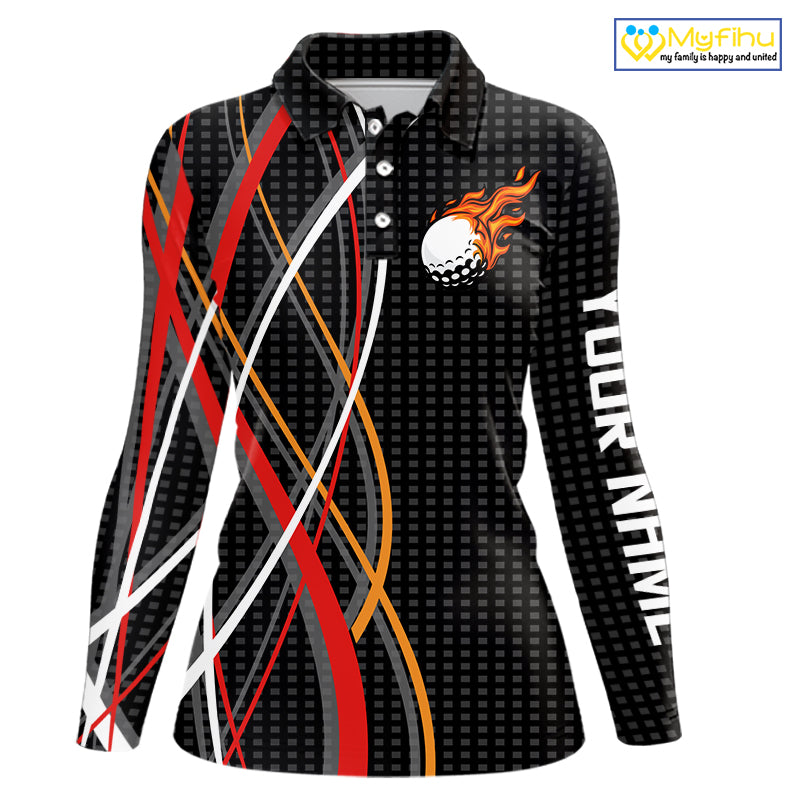 Women Golf polo shirts flame golf ball sport Custom golf outfit for ladies, unique golf gifts | Black NQS10066