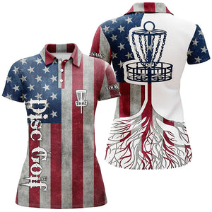 Womens disc golf polo shirt custom American flag patriotic disc golf basket, patriotic disc golf shirt NQS5036
