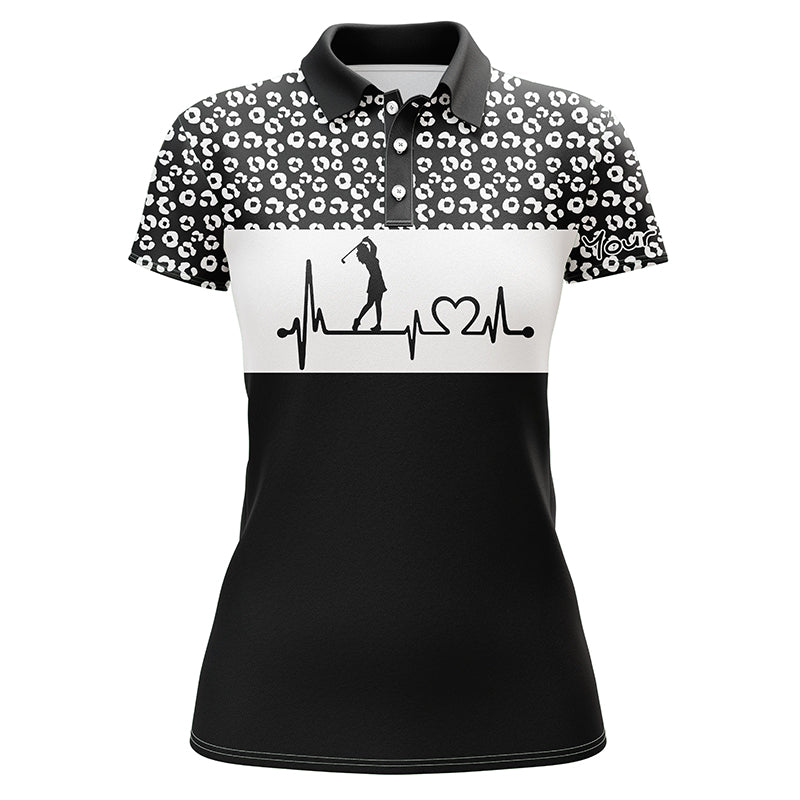 Womens golf polo shirt golf heartbeat custom name leopard pattern golf shirt, womens golf gift ideas NQS4959