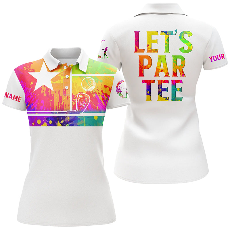 Womens golf polo shirts watercolor Texas flag patriot custom name Let’s Par Tee white golf shirt NQS5470