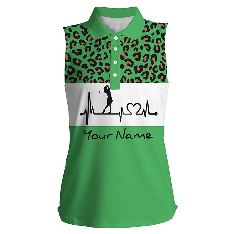Women's sleeveless golf polo shirt  golf heartbeat custom leopard golf shirt, golfing gifts for women NQS4960