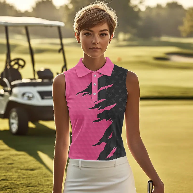 Womens sleeveless golf polos shirts pink golf ball skin black American flag ladies golf apparel NQS9775
