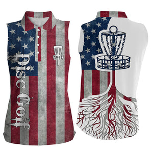 Womens sleeveless polo shirt American flag patriotic disc golf basket, patriotic disc golf shirt NQS5036