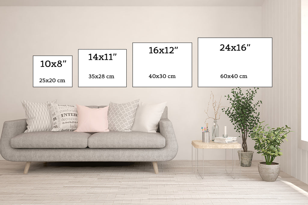 We available canvas in four dimension sizes with both vertical and horizontal orientations including: