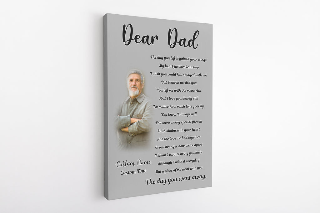 Father Memorial Canvas| Dear Dad in Heaven Personalized Dad Memorial Gift, Sympathy Gift for Loss Father JC887