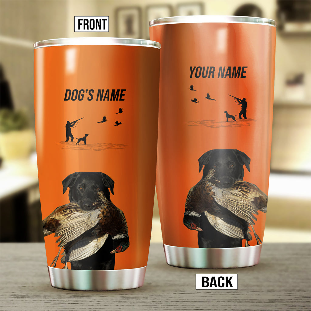Black Labrador Retriever Hunting Dog Custom names Orange Stainless Steel Tumbler Cup FSD4420