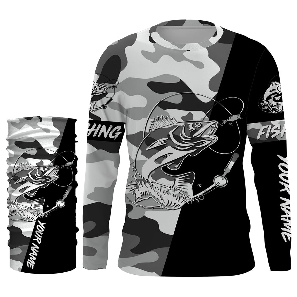 Ice fishing walleye winter camo custom name sun protection long sleeve fishing shirts, walleye jerseys NQS3838