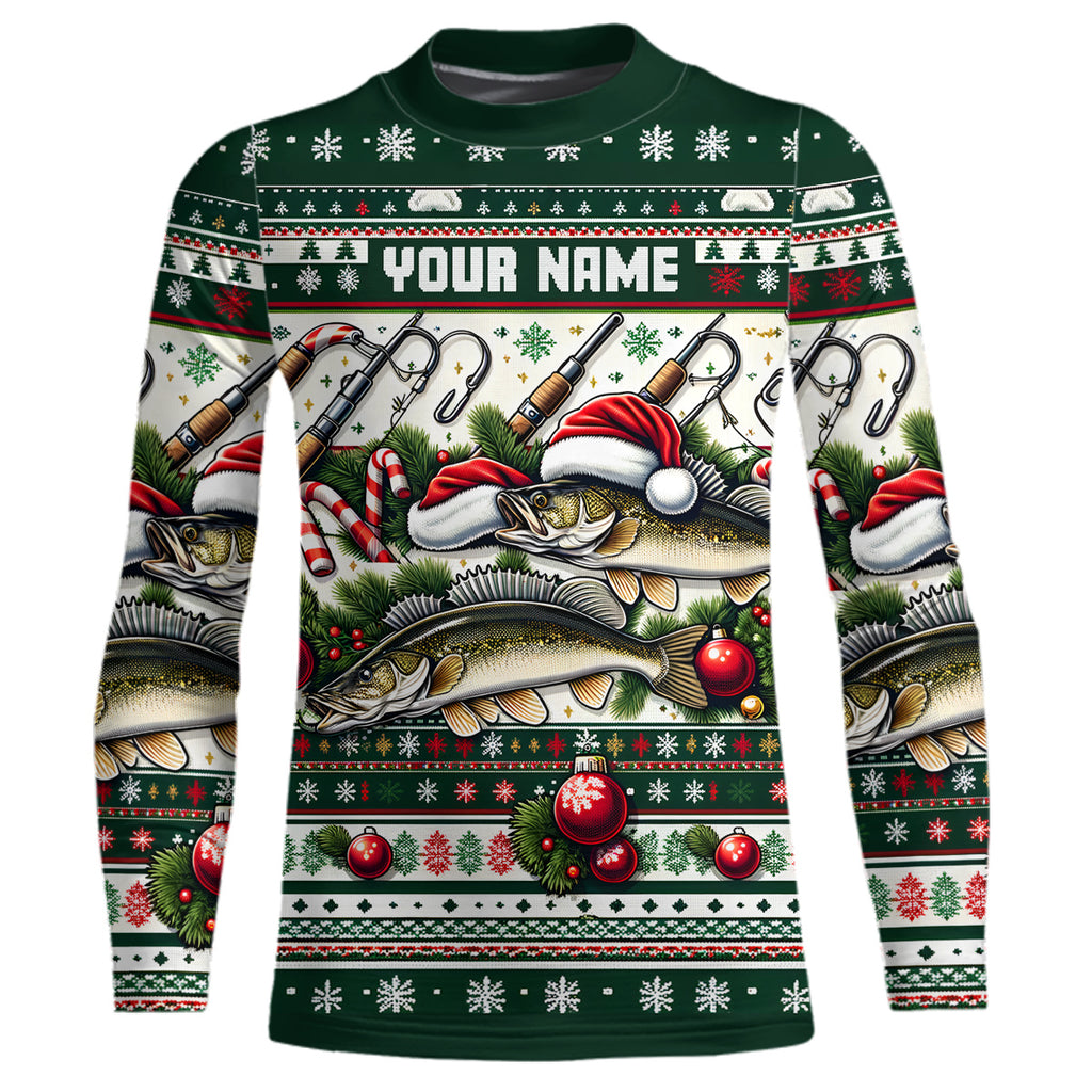 Walleye Fishing Ugly Sweater Pattern Christmas Custom Fishing Shirts Personalized Fishing Gifts IPHW5567