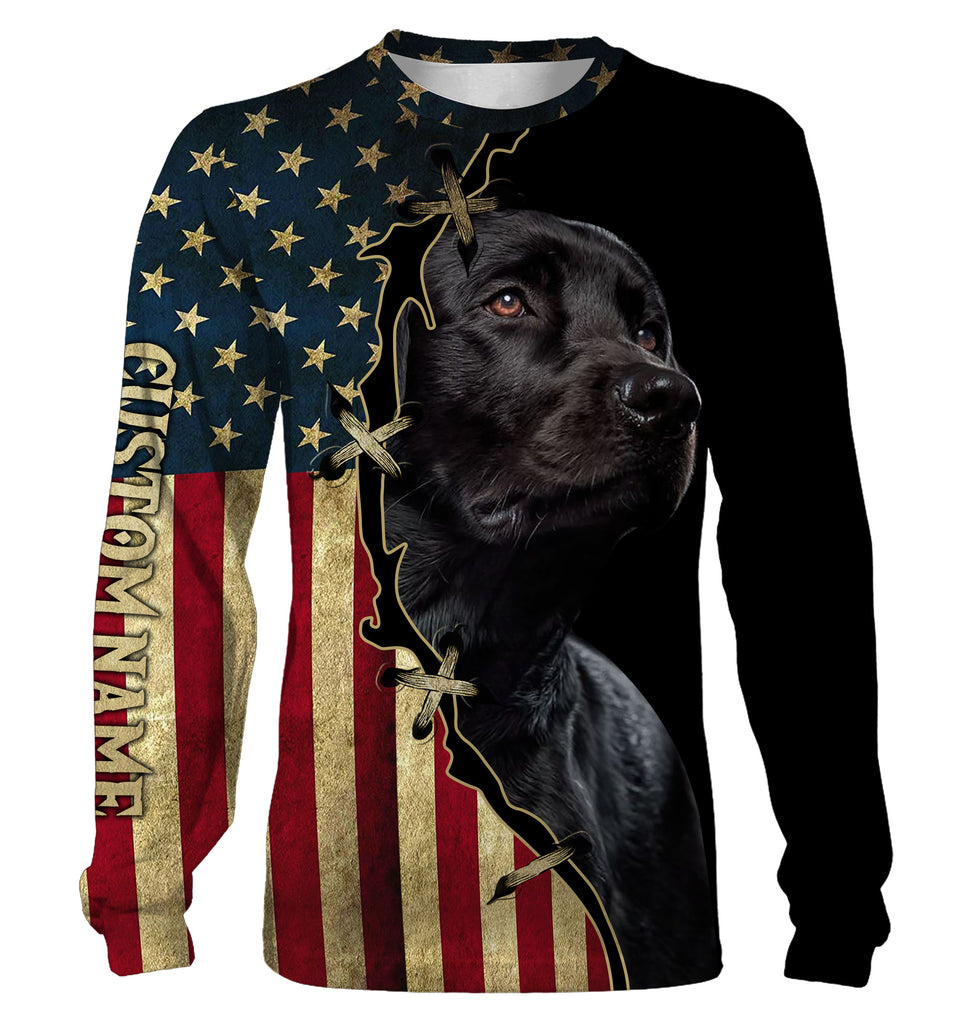 Labrador Retriever All Over Print T-shirt Long Sleeve Hoodie| Custom USA Flag Black Labrador Shirt| JTSD285