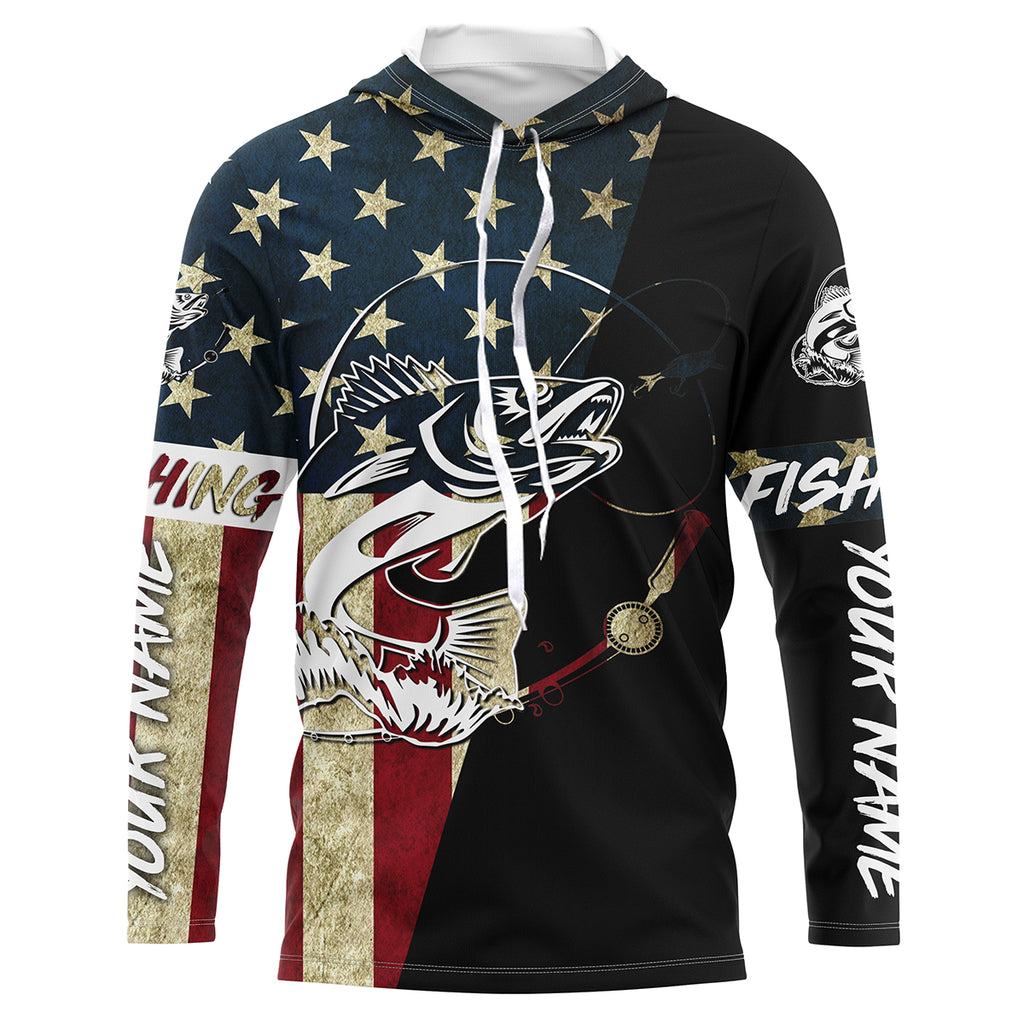 Personalized Walleye American Flag Fishing Shirts, Patriotic Walleye Fishing jerseys - IPHW1829