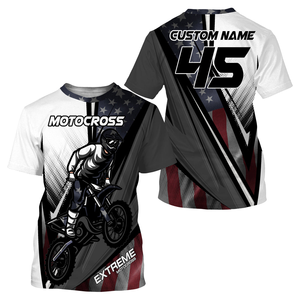Personalized Motocross Jersey UPF30+ Patriotic Racing Shirt American Biker Motorcycle US Adult&Kid| NMS715