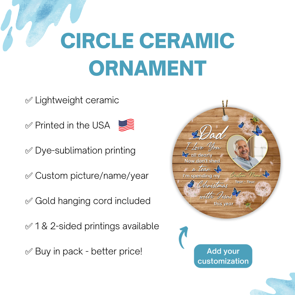 The memory Christmas ornament with meaningful words, personalized picture, name and dates is a heartfelt remembrance keepsake for the loved ones in heaven in holiday season.