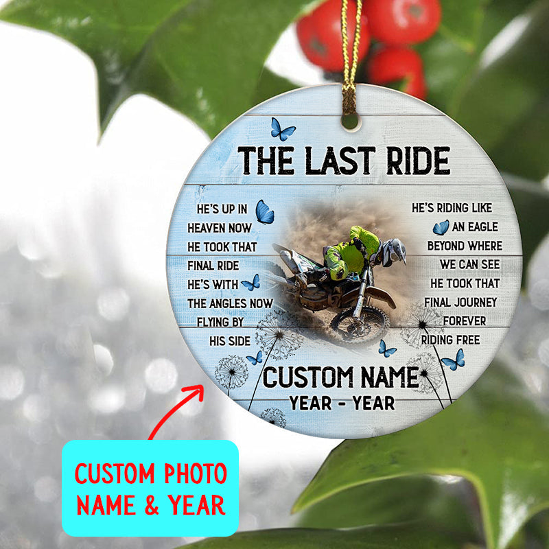 Last Ride In Heaven Personalized Memorial Ornament Christmas Sympathy Gift For Loss Of Biker Dad ODT26