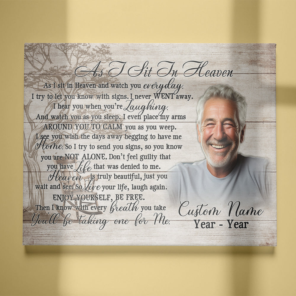 Personalized Memorial Canvas As I Sit In Heaven, Sympathy Gifts for Loss of Loved One In Memory NXM481