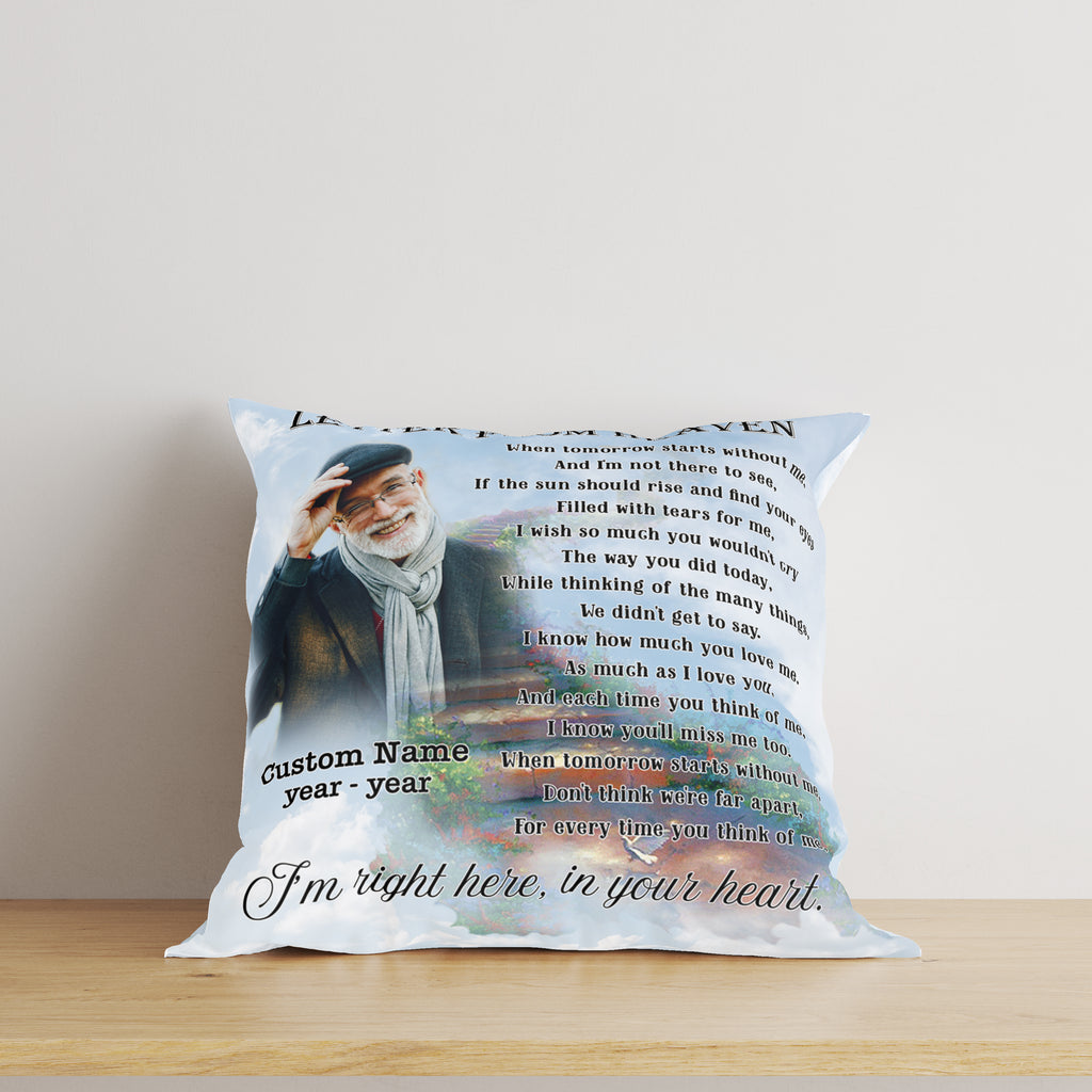 Personalized Memorial Pillow - Letter from Heaven, Sympathy Gift for Loss of Loved One 1-side Print NPL169