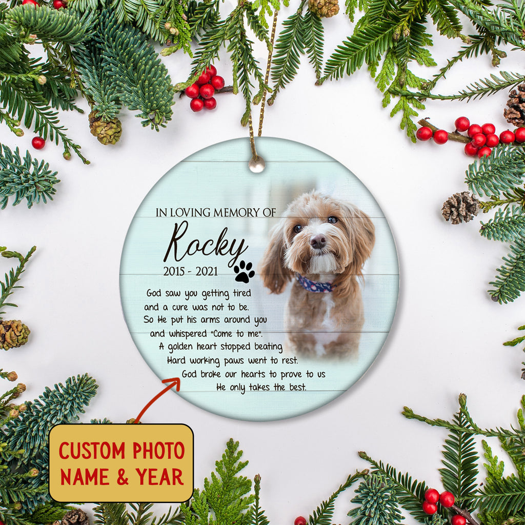 Pet Memorial Ornament - God Saw You Getting Tired, Pet Loss Ornament, Remembrance for Loss of Dog, Loss of Cat, Sympathy Gift for Dog Owners| NOM89